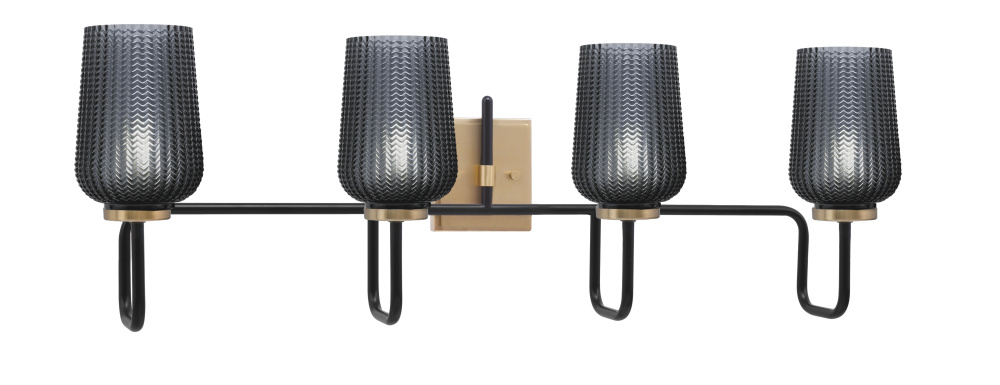 Sandia 4 Light Bath Bar, Matte Black & New Age Brass Finish, 5 Smoke Textured Glass