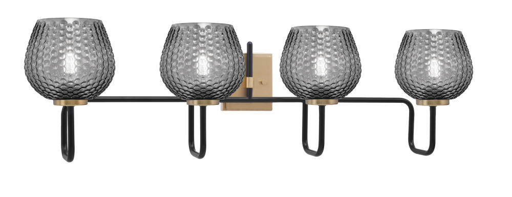 Sandia 4 Light Bath Bar, Matte Black & New Age Brass Finish, 6 Smoke Textured Glass
