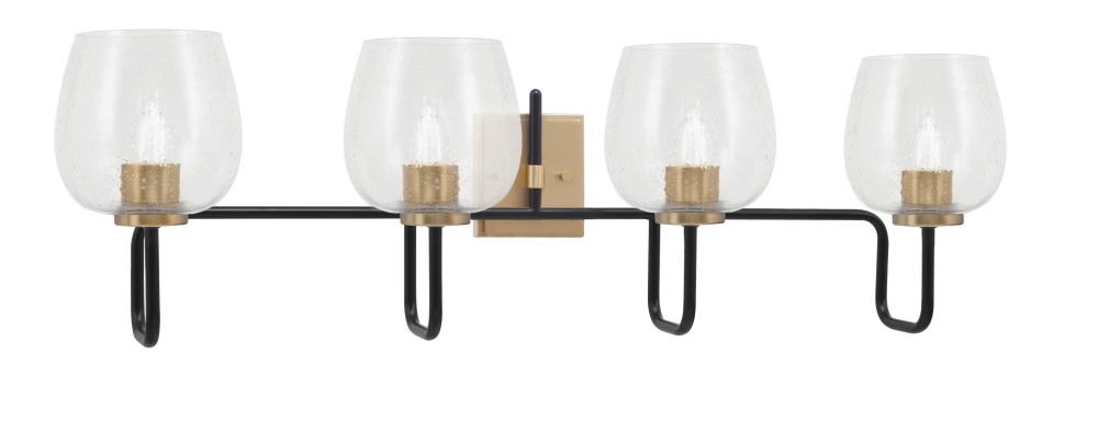 Sandia 4 Light Bath Bar, Matte Black & New Age Brass Finish, 6 Clear Bubble Glass