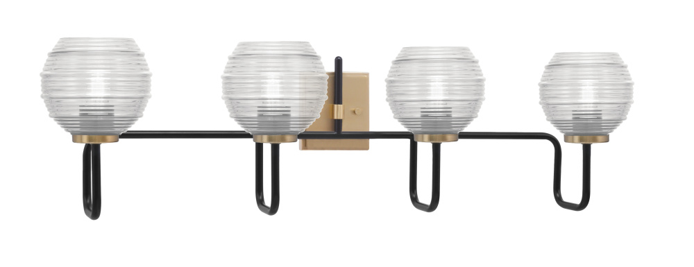 Sandia 4 Light Bath Bar, Matte Black & New Age Brass Finish, 6 Clear Ribbed Glass