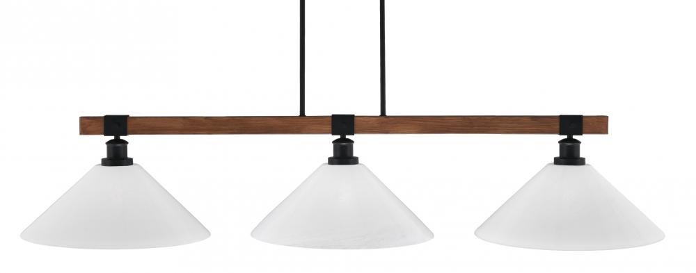 Toltec Lighting 1863-MBWG-2161 Tacoma 3 Light Bar In Matte Black & Painted Wood-Look Metal Finish With 16 White Marble Glass