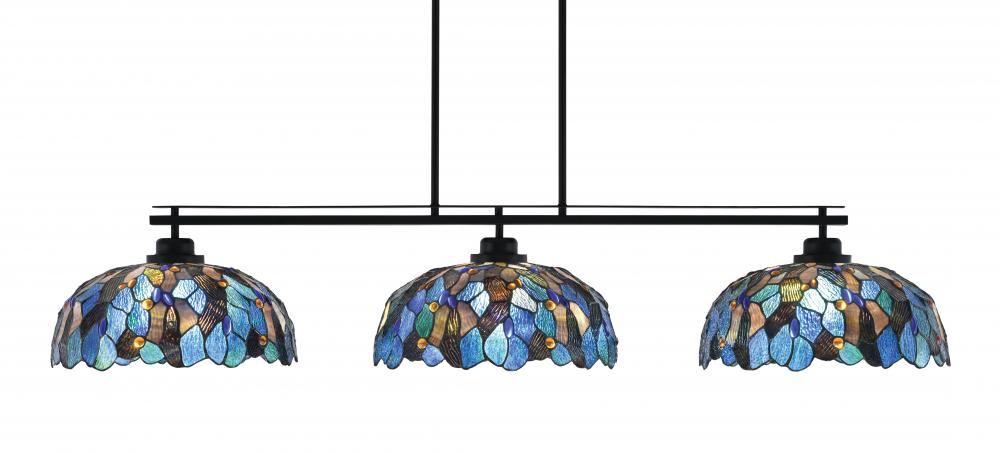 Toltec Lighting 2633-MB-995 Odyssey 3 Light Bar, Round Fitter, Matte Black Finish, 16 Blue Mosaic Art Glass