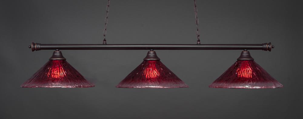 Toltec Lighting 373-DG-716 Oxford 3 Light Bar Shown In Dark Granite Finish With 16 Raspberry Crystal Glass