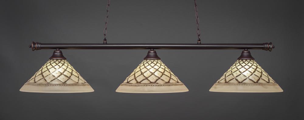Toltec Lighting 373-DG-718 Oxford 3 Light Bar Shown In Dark Granite Finish With 16 Chocolate Icing Glass