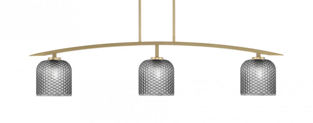 Toltec Lighting 3733-NAB-4912 Kurve 3 Light Bar, New Age Brass Finish, 7 Smoke Textured Glass