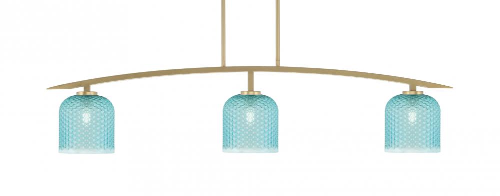 Toltec Lighting 3733-NAB-4915 Kurve 3 Light Bar, New Age Brass Finish, 7 Turquoise Textured Glass