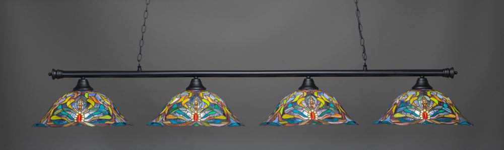 Toltec Lighting 374-MB-990 Oxford 4 Light Bar Shown In Matte Black Finish With 19 Kaleidoscope Art Glass