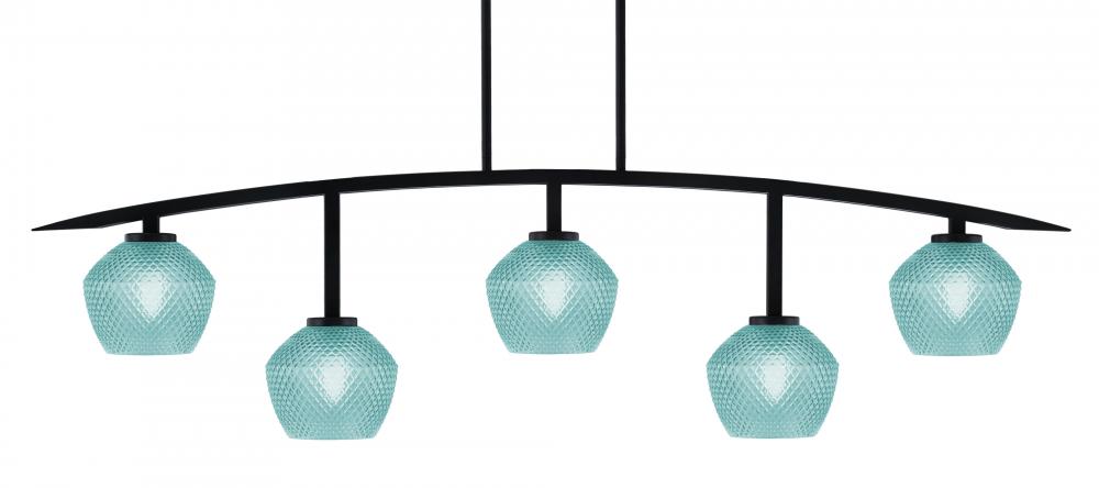 Toltec Lighting 3745-MB-4625 Kurve 5 Light Bar, Matte Black Finish, 6 Turquoise Textured Glass