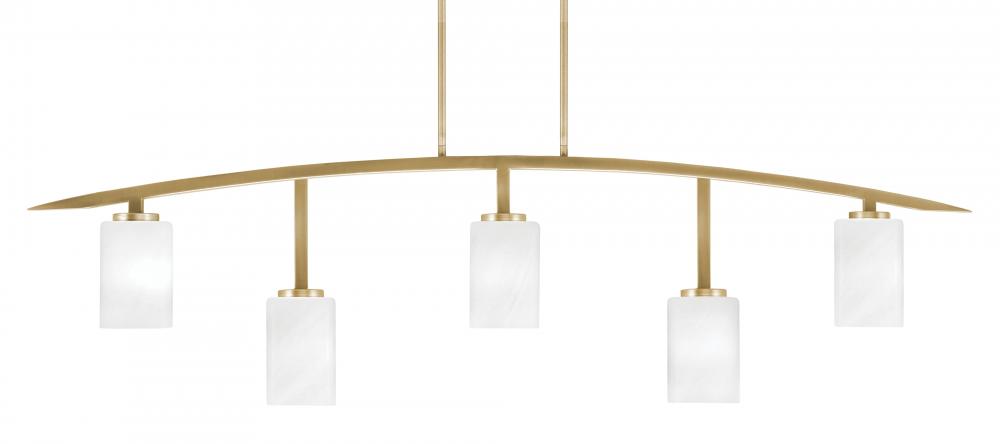 Toltec Lighting 3745-NAB-3001 Kurve 5 Light Bar, New Age Brass Finish, 4 White Marble Glass