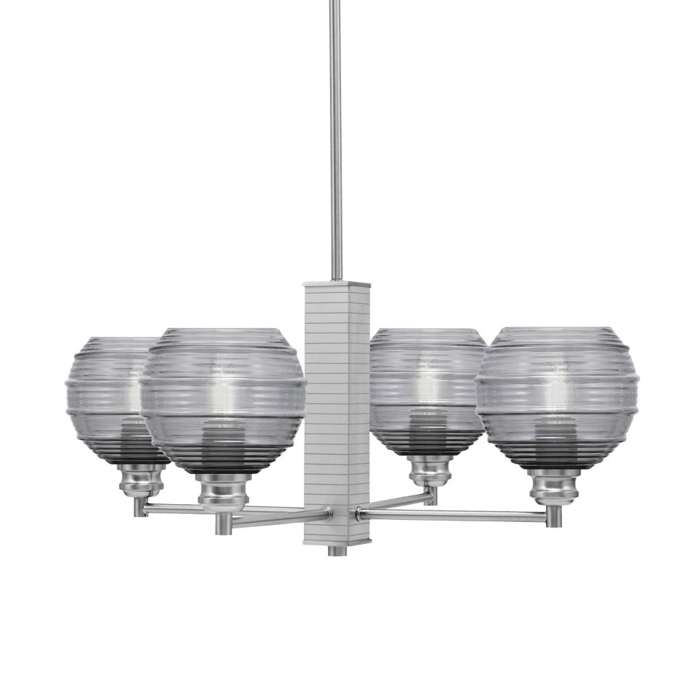 Toltec Lighting 1154-BN-5112 Edge 4 Light Chandelier, Brushed Nickel Finish, 6 Smoke Ribbed Glass