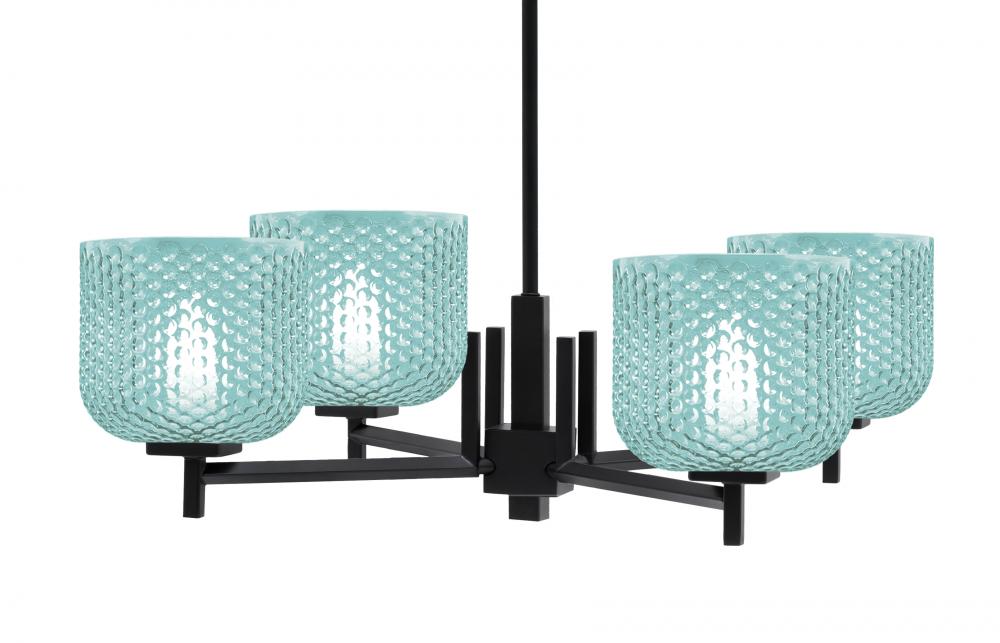 Franklin 4 Light Chandelier Shown In Matte Black With 6 Turquoise Textured Glass