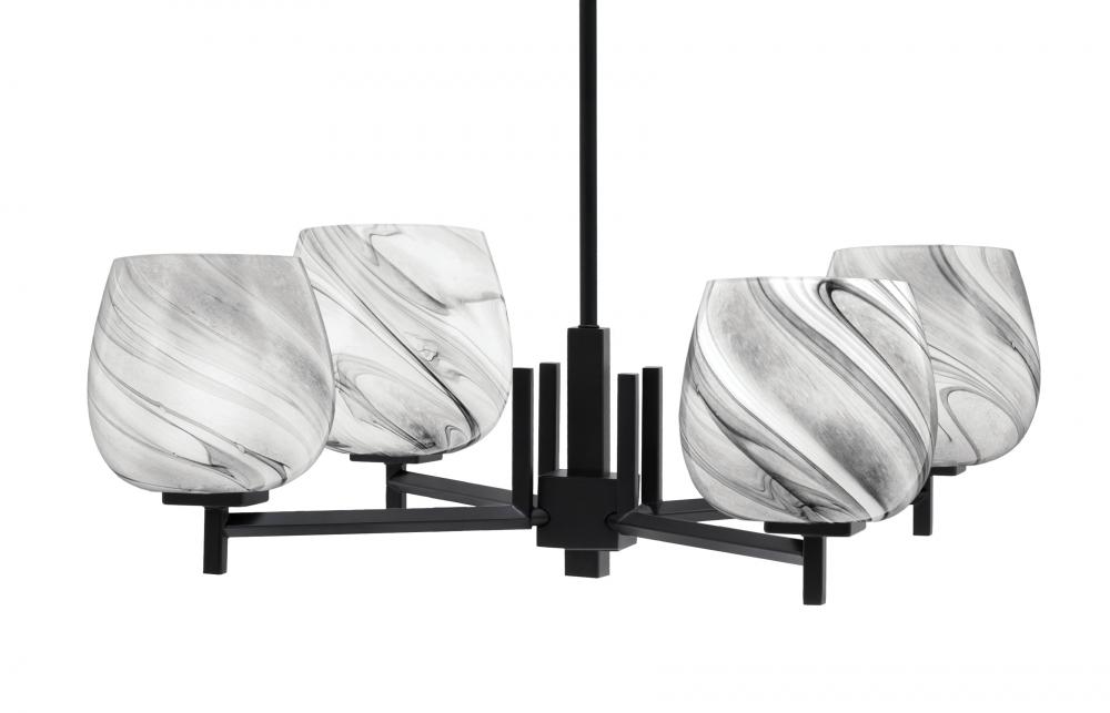 Franklin 4 Light Chandelier Shown In Matte Black With 6 Onyx Swirl Glass