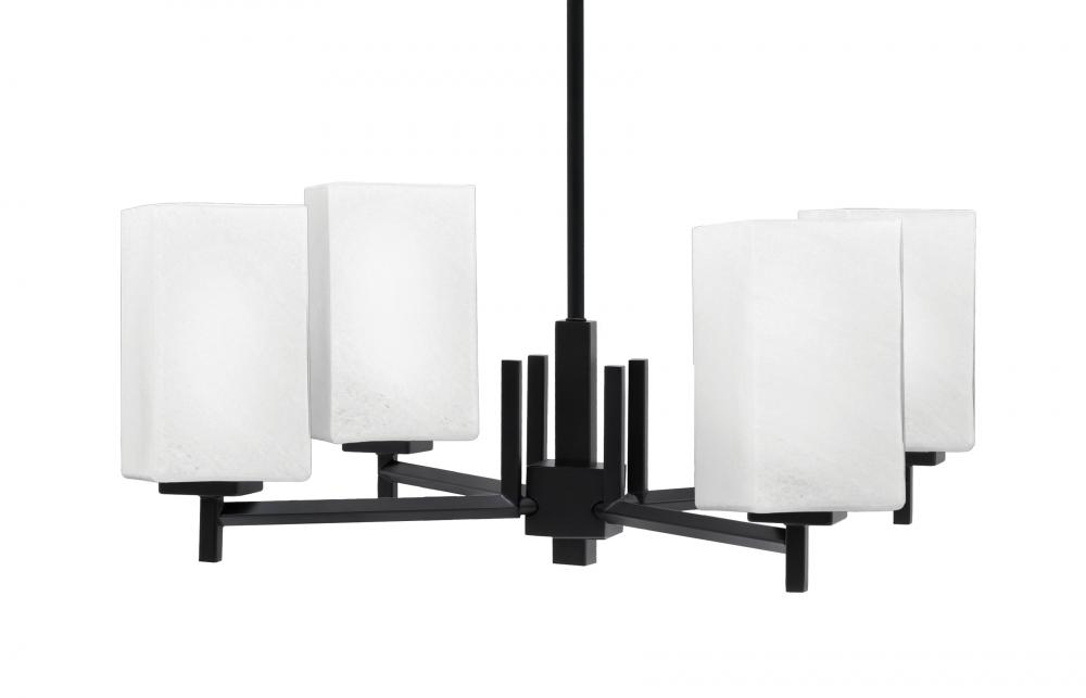 Franklin 4 Light Chandelier Shown In Matte Black With 4 Square White Muslin Glass