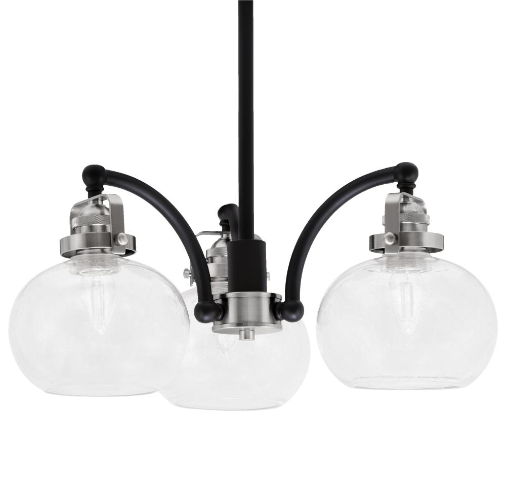 Toltec Lighting 1943-MBBN-202 Easton 3 Light, Downlight, Chandelier With Hang Straight Swivel Shown In Matte Black & Brushed Nickel Finish With 7 Clear Bubble Glass