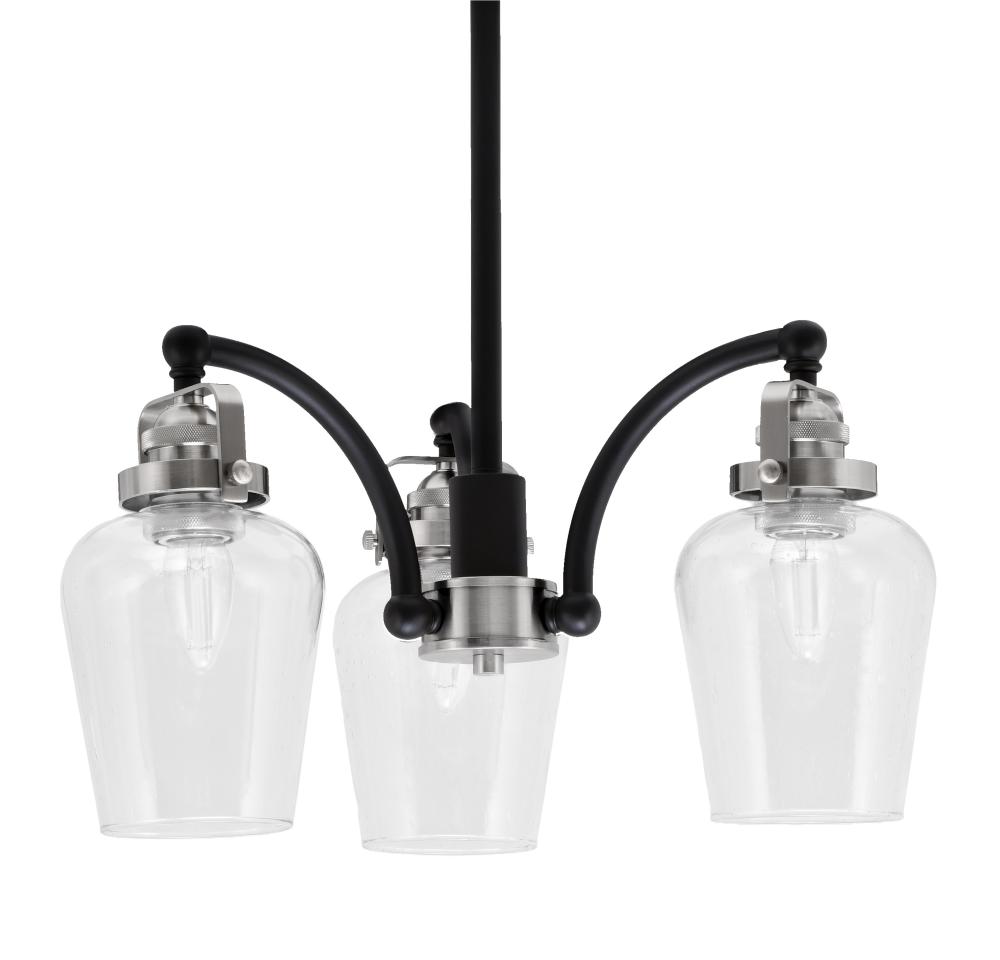 Toltec Lighting 1943-MBBN-210 Easton 3 Light, Downlight, Chandelier With Hang Straight Swivel Shown In Matte Black & Brushed Nickel Finish With 5 Clear Bubble Glass