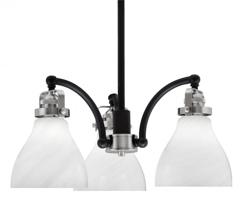 Toltec Lighting 1943-MBBN-4761 Easton 3 Light, Downlight, Chandelier With Hang Straight Swivel Shown In Matte Black & Brushed Nickel Finish With 6.25 White Marble Glass