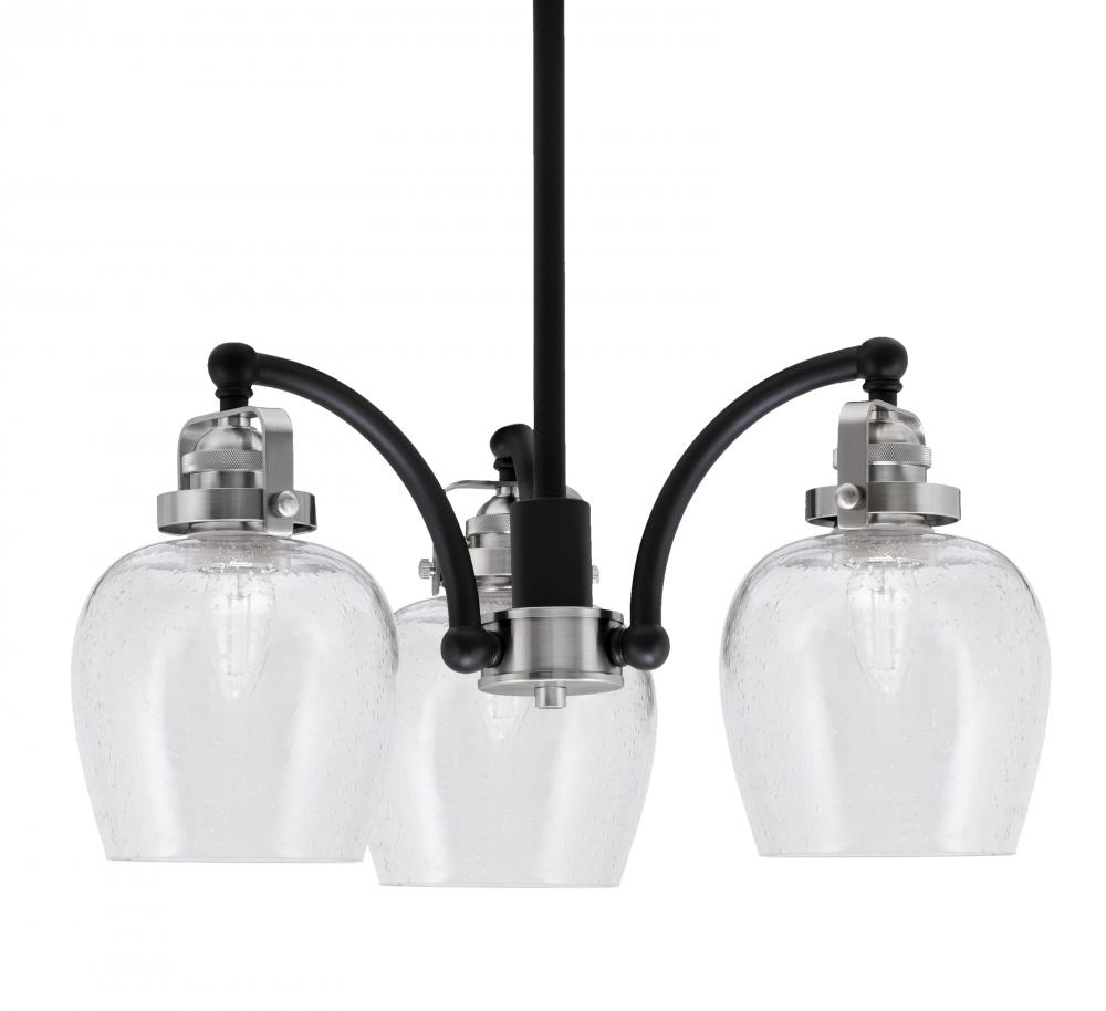 Toltec Lighting 1943-MBBN-4810 Easton 3 Light, Downlight, Chandelier With Hang Straight Swivel Shown In Matte Black & Brushed Nickel Finish With 6 Clear Bubble Glass