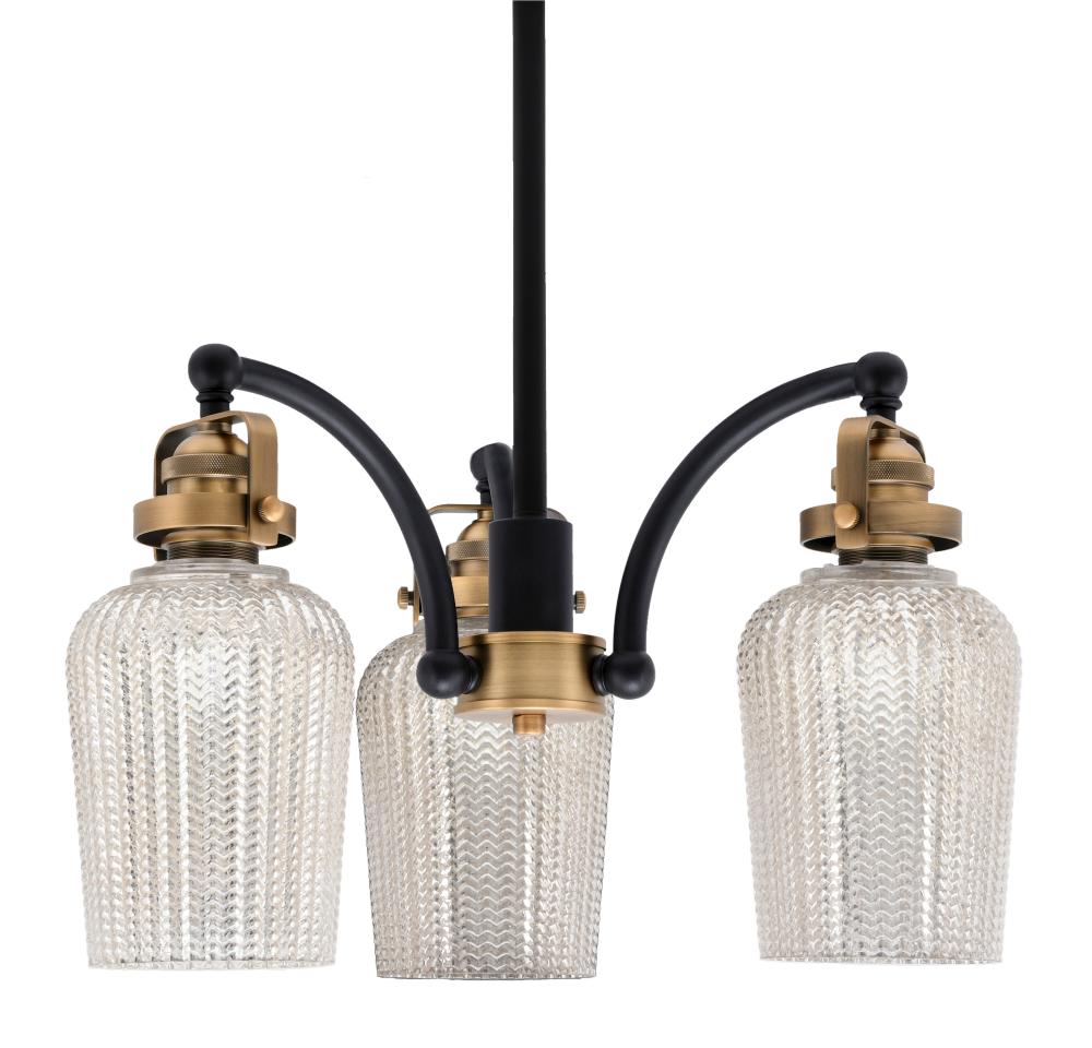 Toltec Lighting 1943-MBBR-4253 Easton 3 Light, Downlight, Chandelier With Hang Straight Swivel Shown In Matte Black & Brass Finish With 5 Silver Textured Glass