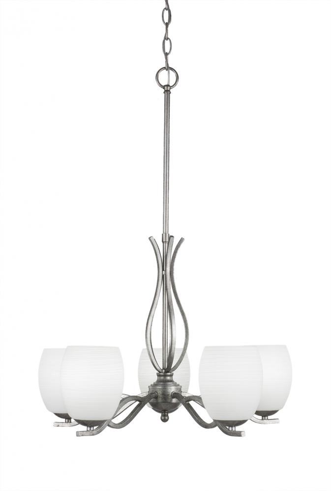 Toltec Lighting 245-AS-615 Revo 5 Light, Uplight, Chandelier Shown In Aged Silver Finish With 5 White Linen Glass