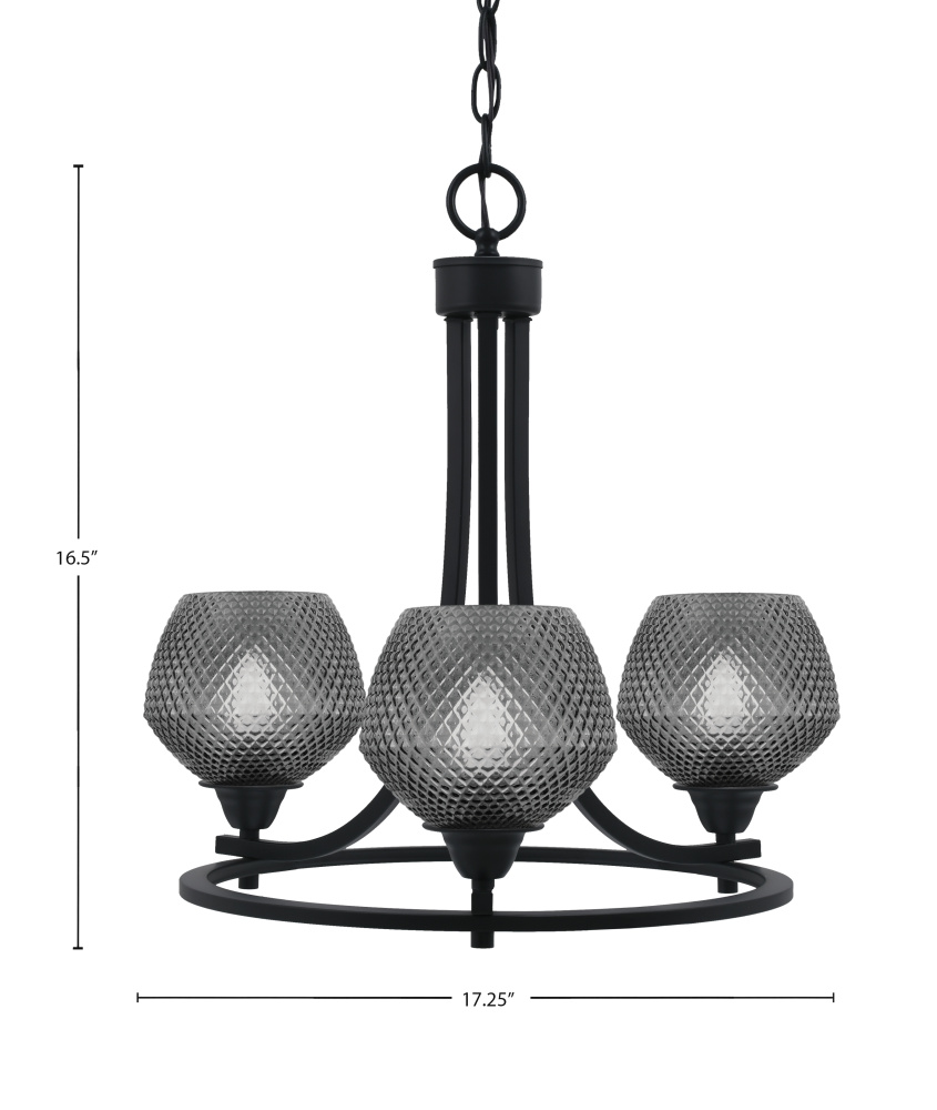 Paramount 3 Light Uplight Chandelier Shown In Matte Black Finish With 6 Smoke Textured Glass
