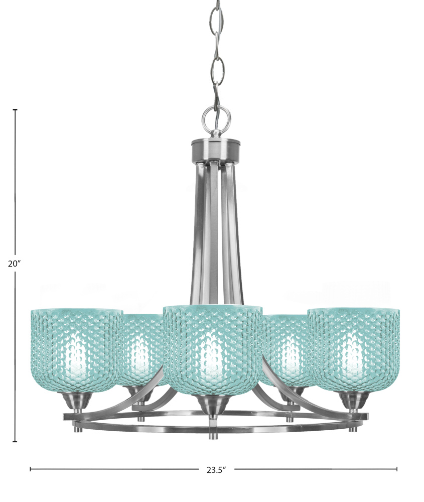 Paramount 5 Light Uplight Chandelier Shown In Brushed Nickel Finish With 6 Turquoise Textured Glass