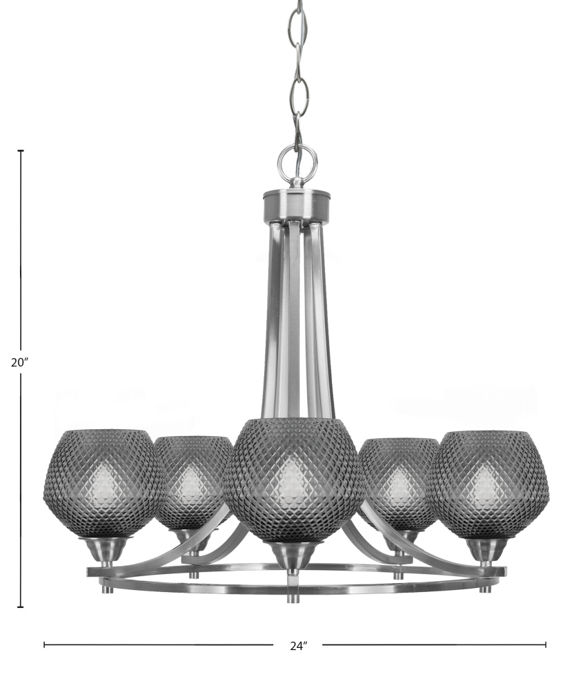 Paramount 5 Light Uplight Chandelier Shown In Brushed Nickel Finish With 6 Smoke Textured Glass