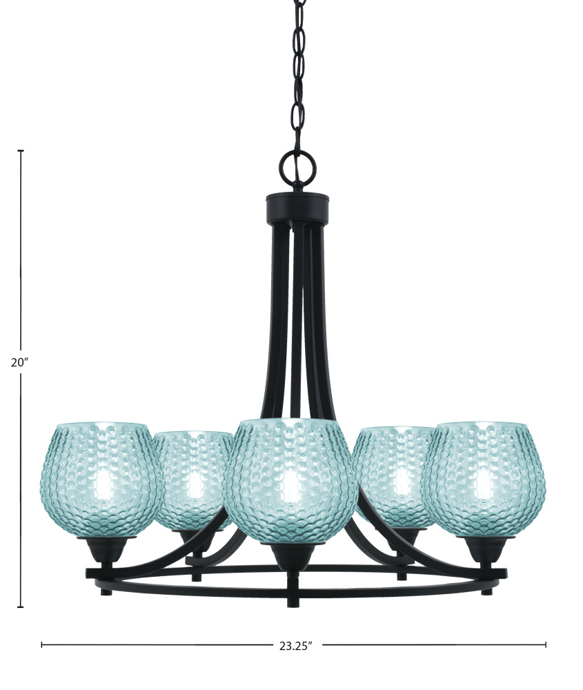 Paramount 5 Light Uplight Chandelier Shown In Matte Black Finish With 6 Turquoise Textured Glass