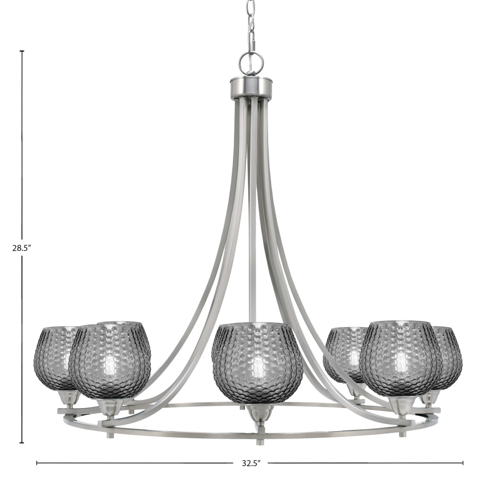 Paramount 8 Light Uplight Chandelier Shown In Brushed Nickel Finish With 6 Smoke Textured Glass