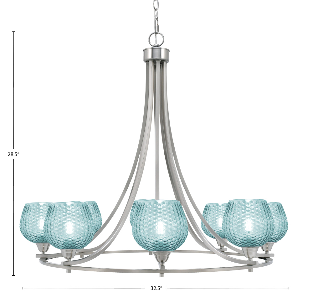 Paramount 8 Light Uplight Chandelier Shown In Brushed Nickel Finish With 6 Turquoise Textured Glass