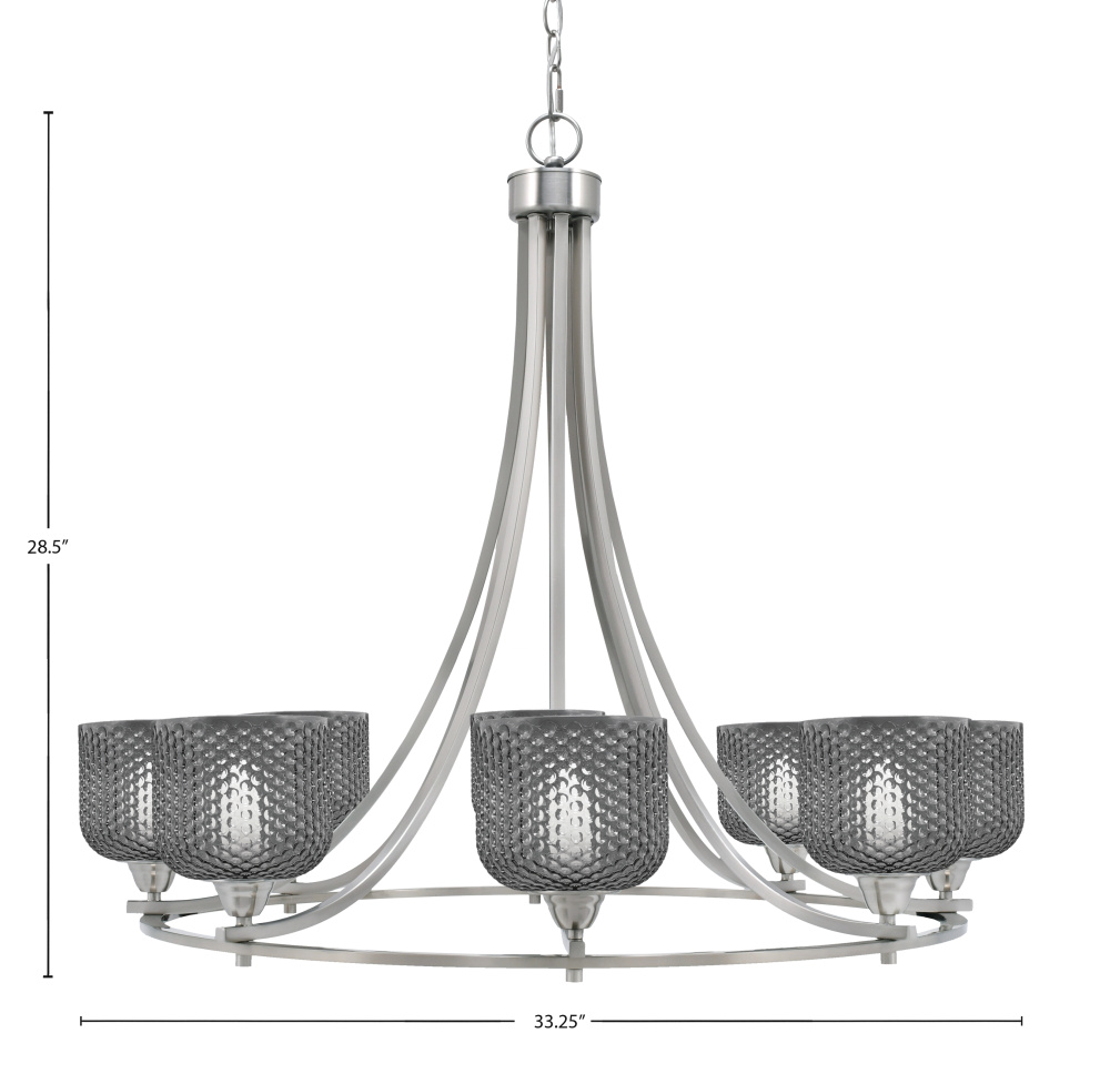 Paramount 8 Light Uplight Chandelier Shown In Brushed Nickel Finish With 6 Smoke Textured Glass