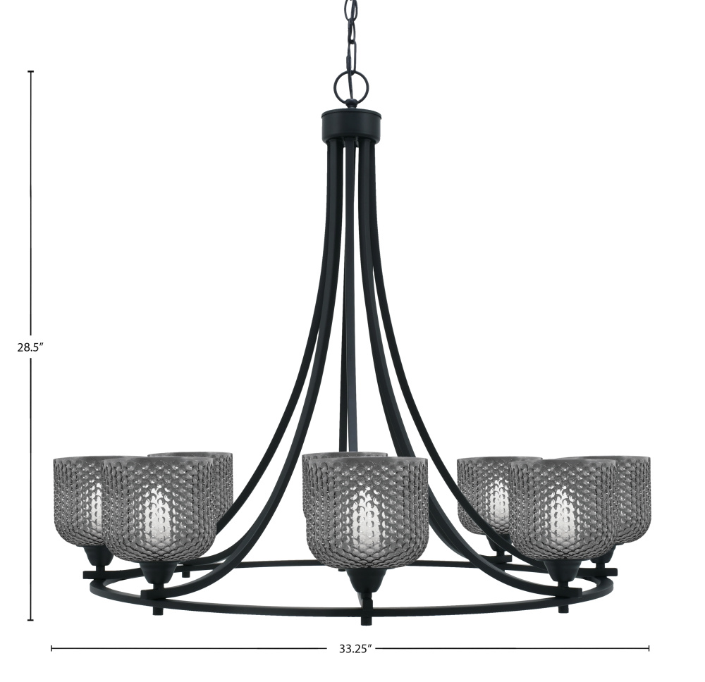 Paramount 8 Light Uplight Chandelier Shown In Matte Black Finish With 6 Smoke Textured Glass