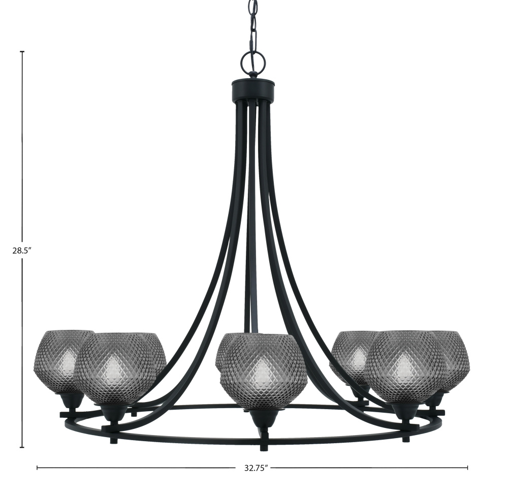 Paramount 8 Light Uplight Chandelier Shown In Matte Black Finish With 6 Smoke Textured Glass