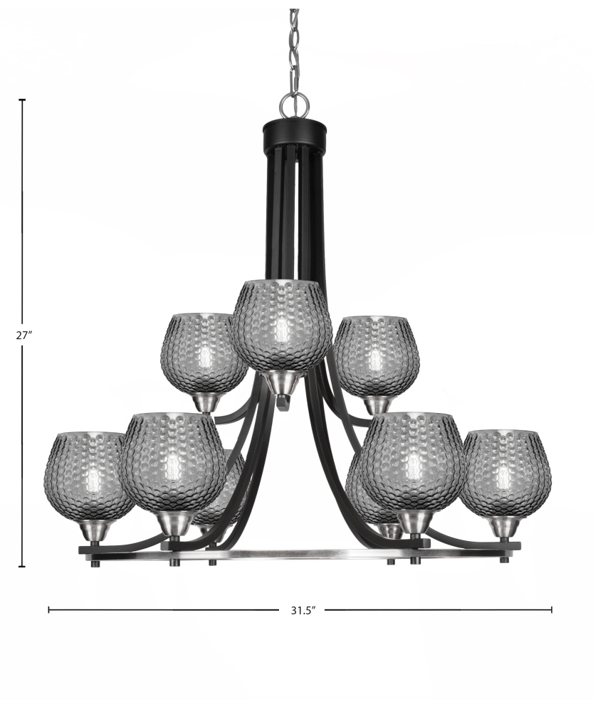 Paramount 9 Light Uplight Chandelier Shown In Matte Black & Brushed Nickel Finish With 6 Smoke Textured Glass