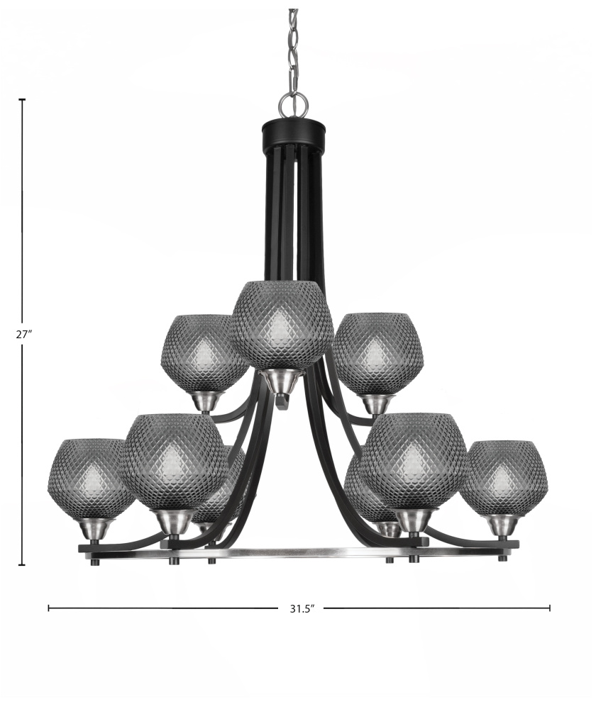 Paramount 9 Light Uplight Chandelier Shown In Matte Black & Brushed Nickel Finish With 6 Smoke Textured Glass