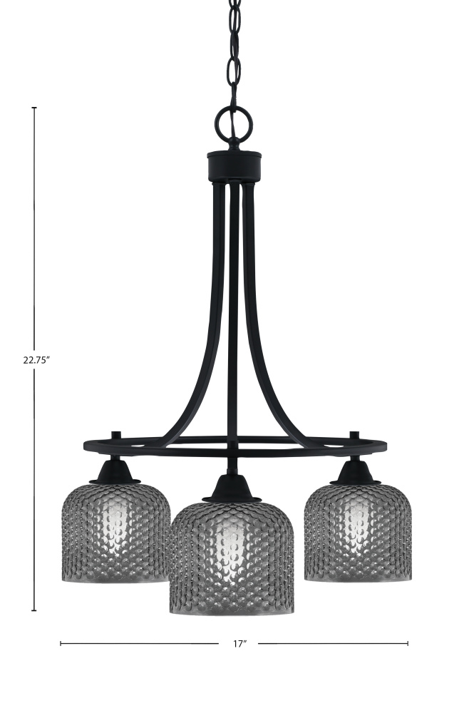Paramount 3 Light Downlight Chandelier Shown In Matte Black Finish With 6 Smoke Textured Glass