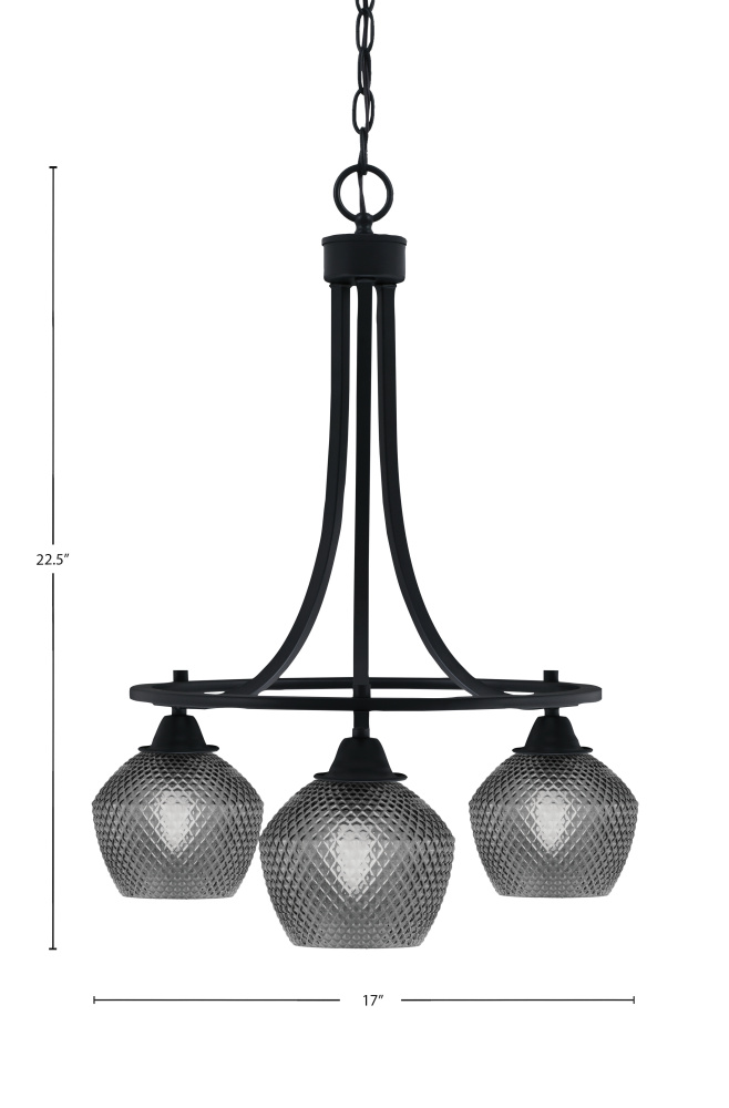 Paramount 3 Light Downlight Chandelier Shown In Matte Black Finish With 6 Smoke Textured Glass