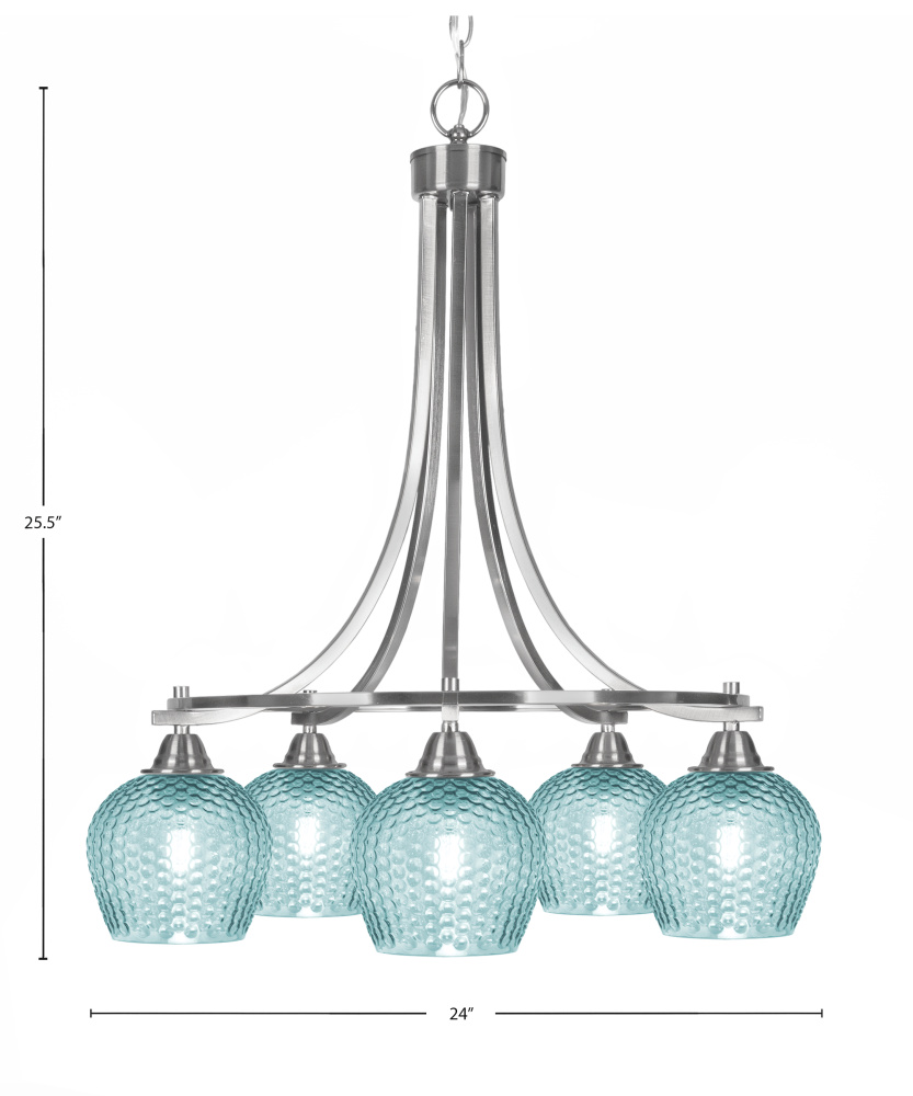 Paramount 5 Light Downlight Chandelier Shown In Brushed Nickel Finish With 6 Turquoise Textured Glass
