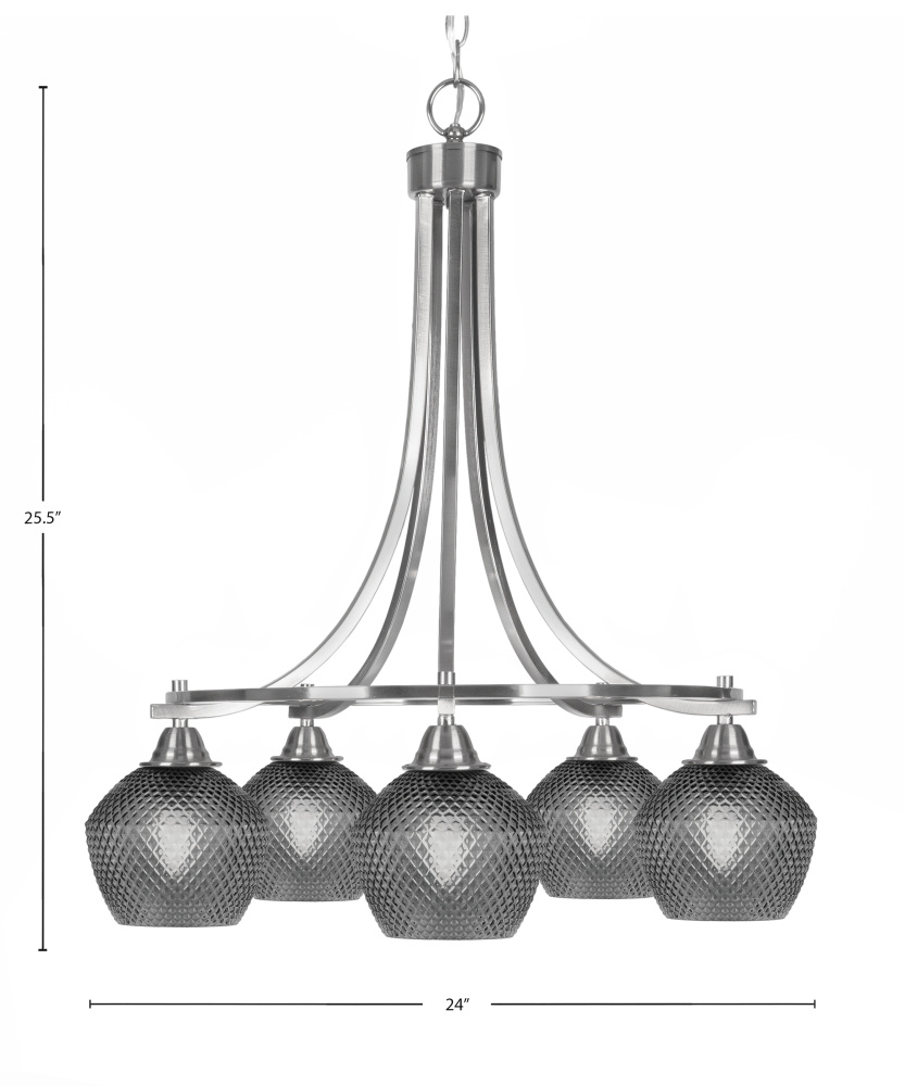 Paramount 5 Light Downlight Chandelier Shown In Brushed Nickel Finish With 6 Smoke Textured Glass