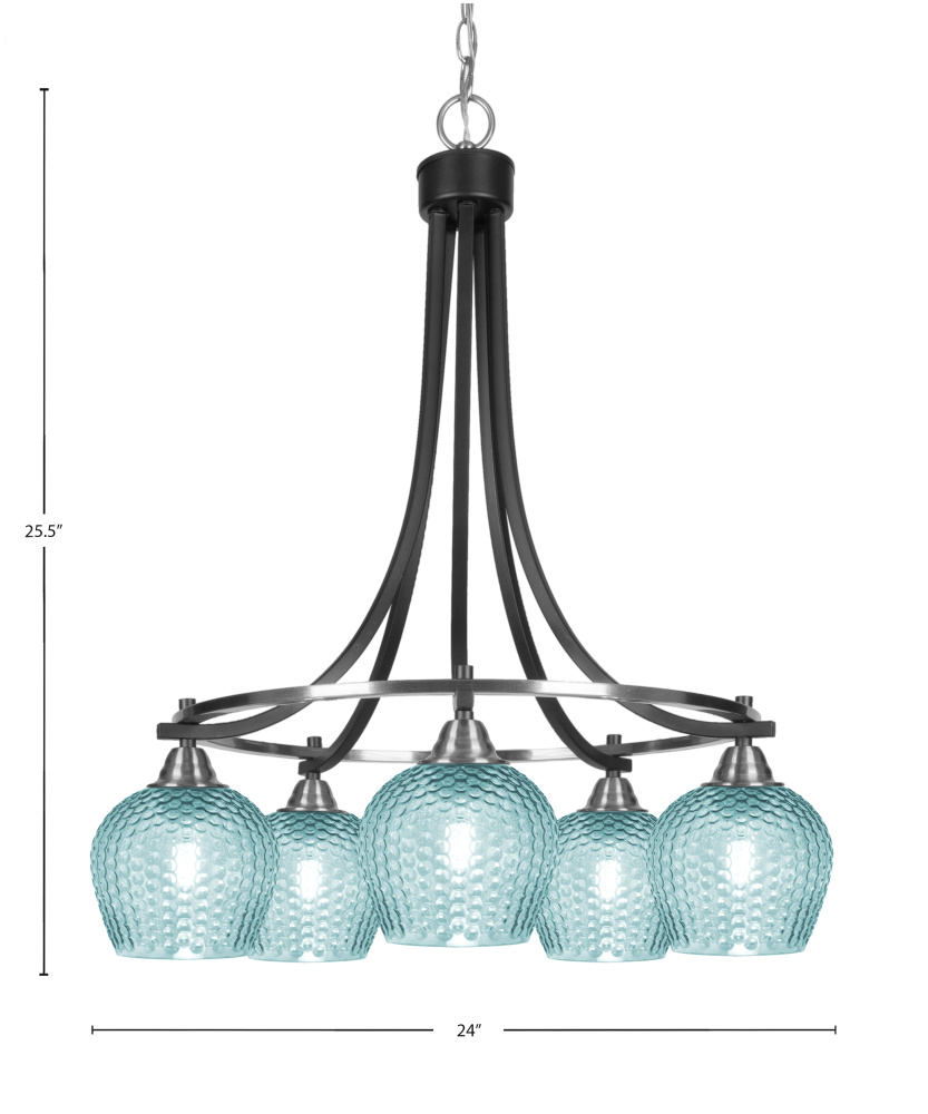 Paramount 5 Light Downlight Chandelier Shown In Matte Black & Brushed Nickel Finish With 6 Turquoise Textured Glass