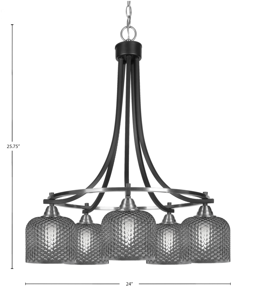 Paramount 5 Light Downlight Chandelier Shown In Matte Black & Brushed Nickel Finish With 6 Smoke Textured Glass