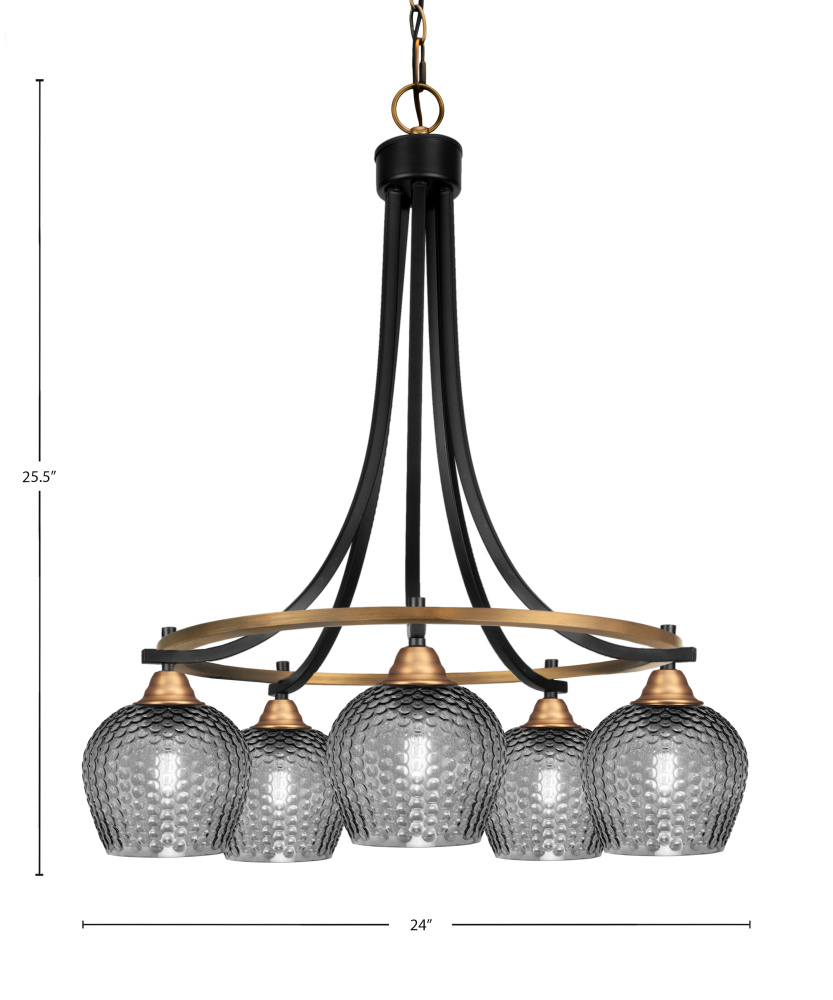 Paramount 5 Light Downlight Chandelier Shown In Matte Black & Brass Finish With 6 Smoke Textured Glass