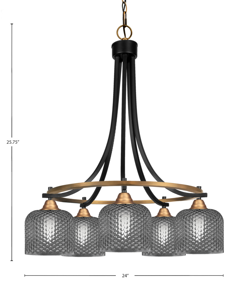 Paramount 5 Light Downlight Chandelier Shown In Matte Black & Brass Finish With 6 Smoke Textured Glass