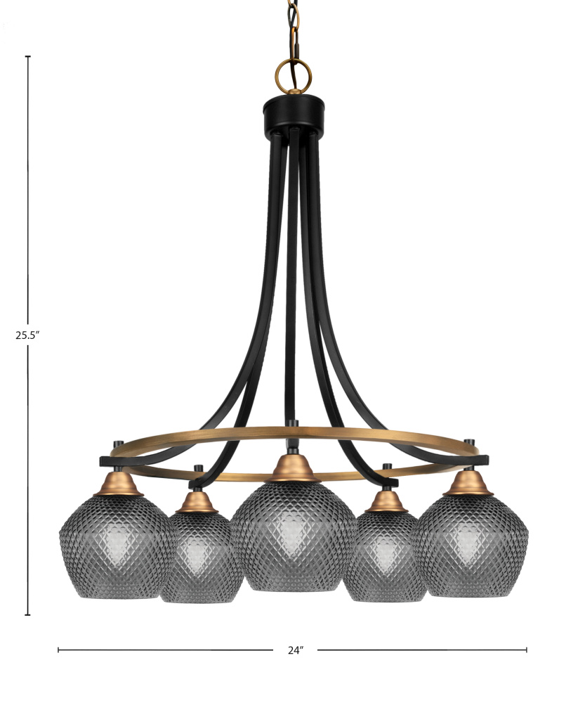 Paramount 5 Light Downlight Chandelier Shown In Matte Black & Brass Finish With 6 Smoke Textured Glass