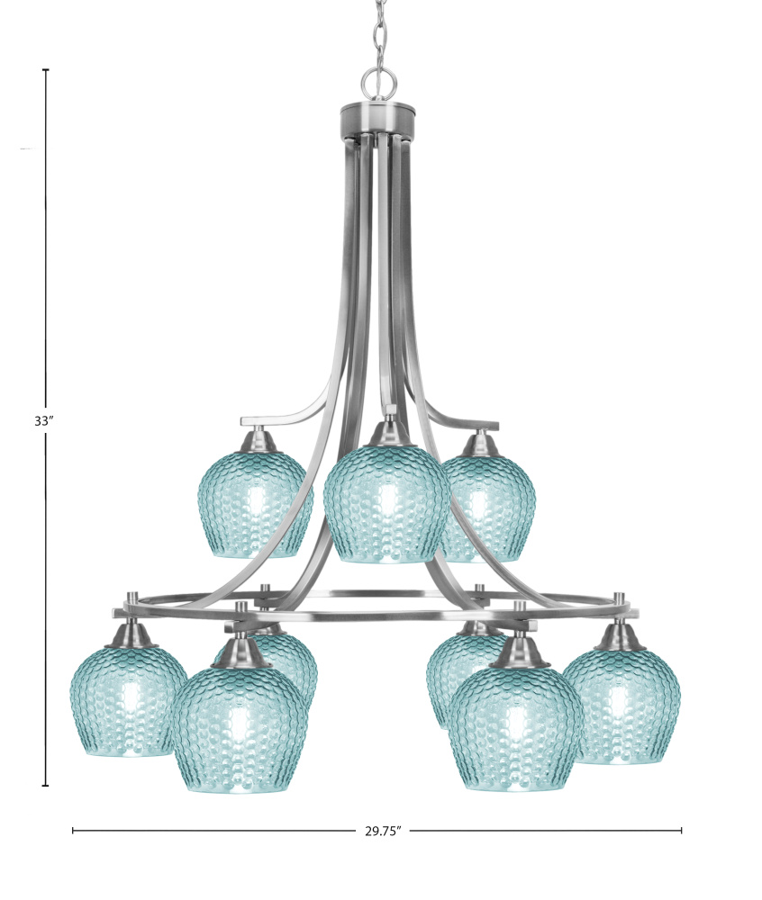 Paramount 9 Light Downlight Chandelier Shown In Brushed Nickel Finish With 6 Turquoise Textured Glass