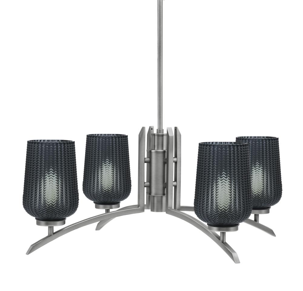 Toltec Lighting 3704-GP-4252 Kurve 4 Light Chandelier, Graphite Finish, 5 Smoke Textured Glass