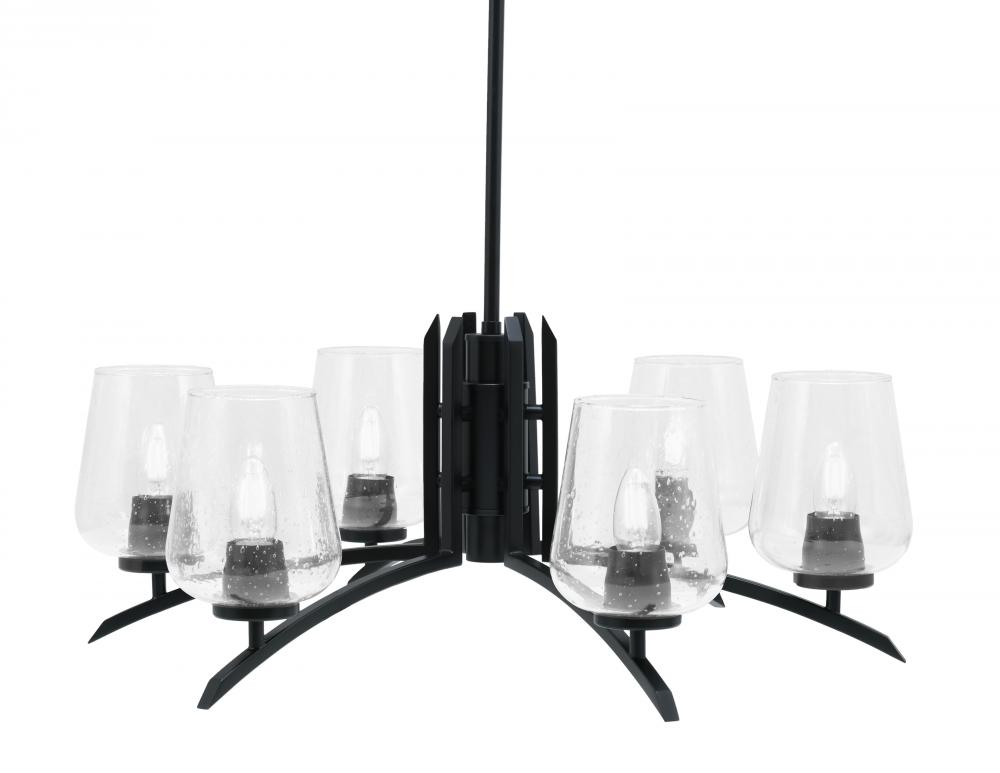Toltec Lighting 3706-MB-210 Kurve 6 Light Chandelier, Matte Black Finish, 5 Clear Bubble Glass