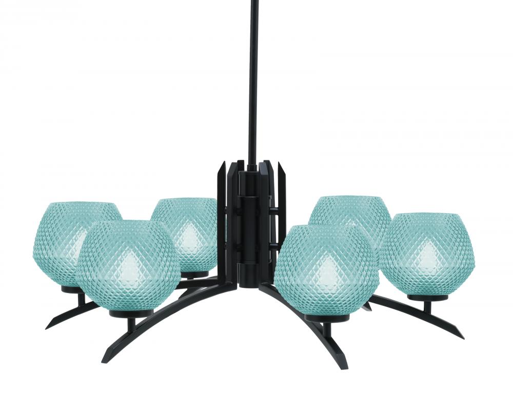 Toltec Lighting 3706-MB-4625 Kurve 6 Light Chandelier, Matte Black Finish, 6 Turquoise Textured Glass