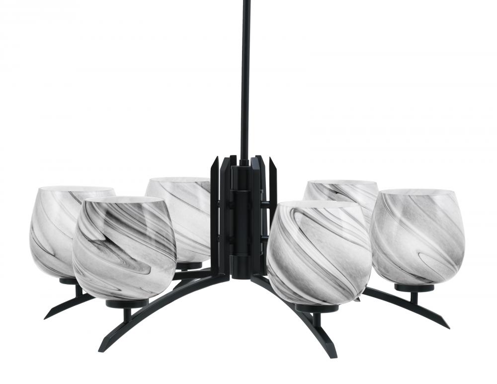 Toltec Lighting 3706-MB-4819 Kurve 6 Light Chandelier, Matte Black Finish, 6 Onyx Swirl Glass