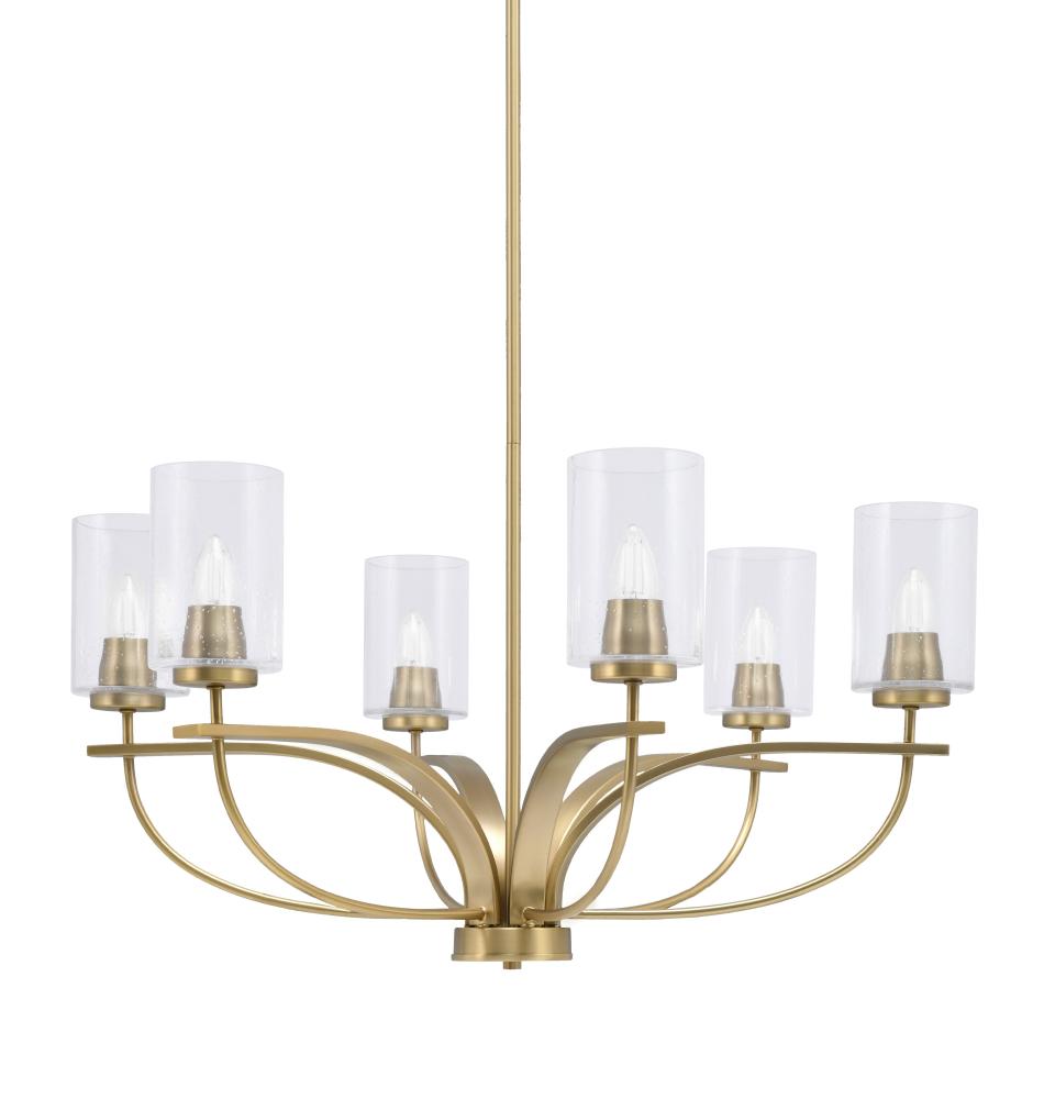 Toltec Lighting 3906-NAB-300 Cavella 6 Light, Uplight, Chandelier, New Age Brass Finish, 4 Clear Bubble Glass