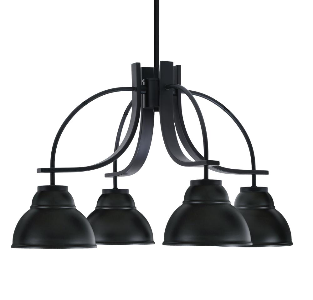 Toltec Lighting 3924-MB-427 Cavella 4 Light, Downlight Chandelier, Matte Black Finish, 7 Matte Black Double Bubble Metal Shades